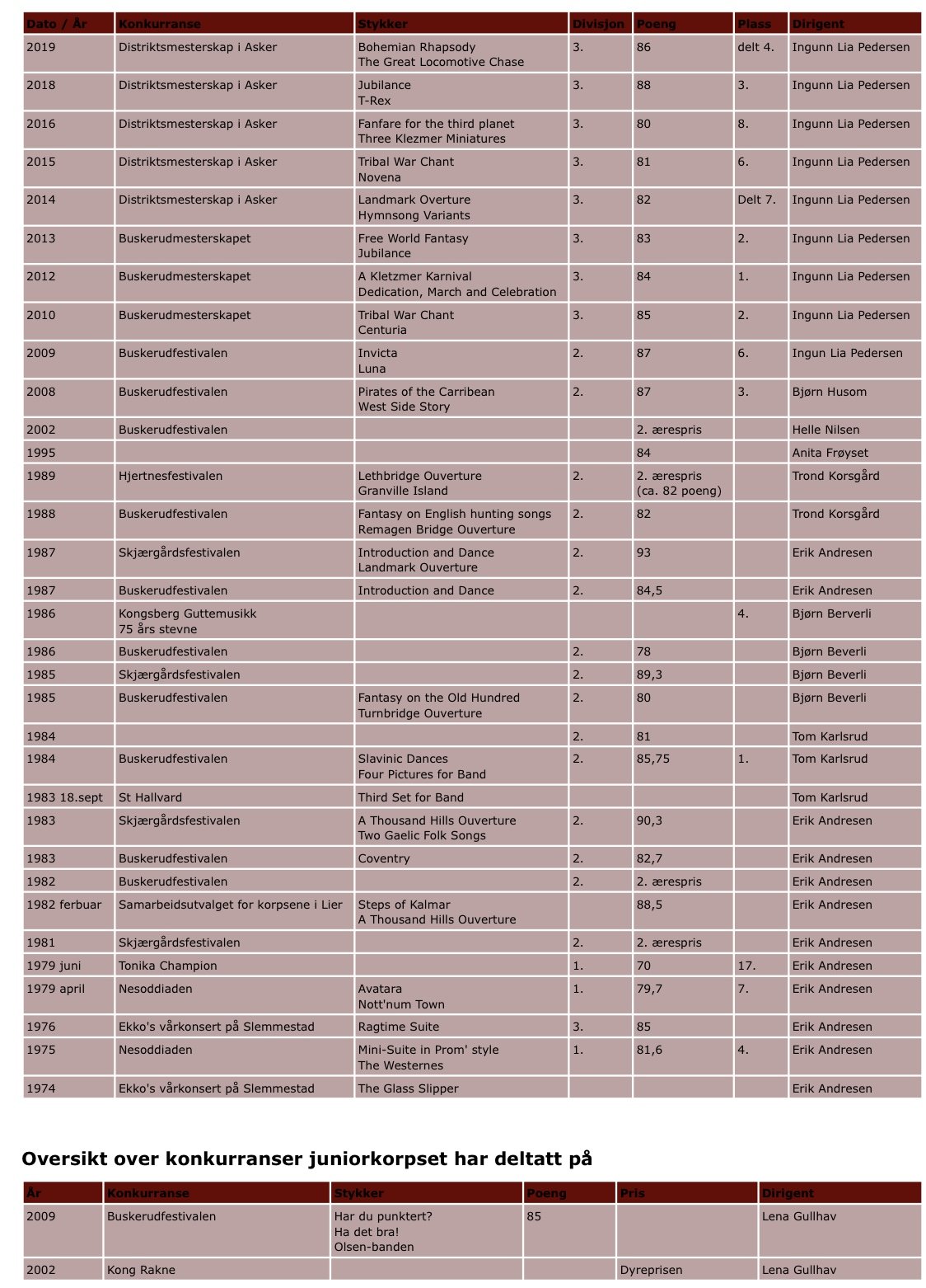 Oversikt over konkurranser fra 1974-2019